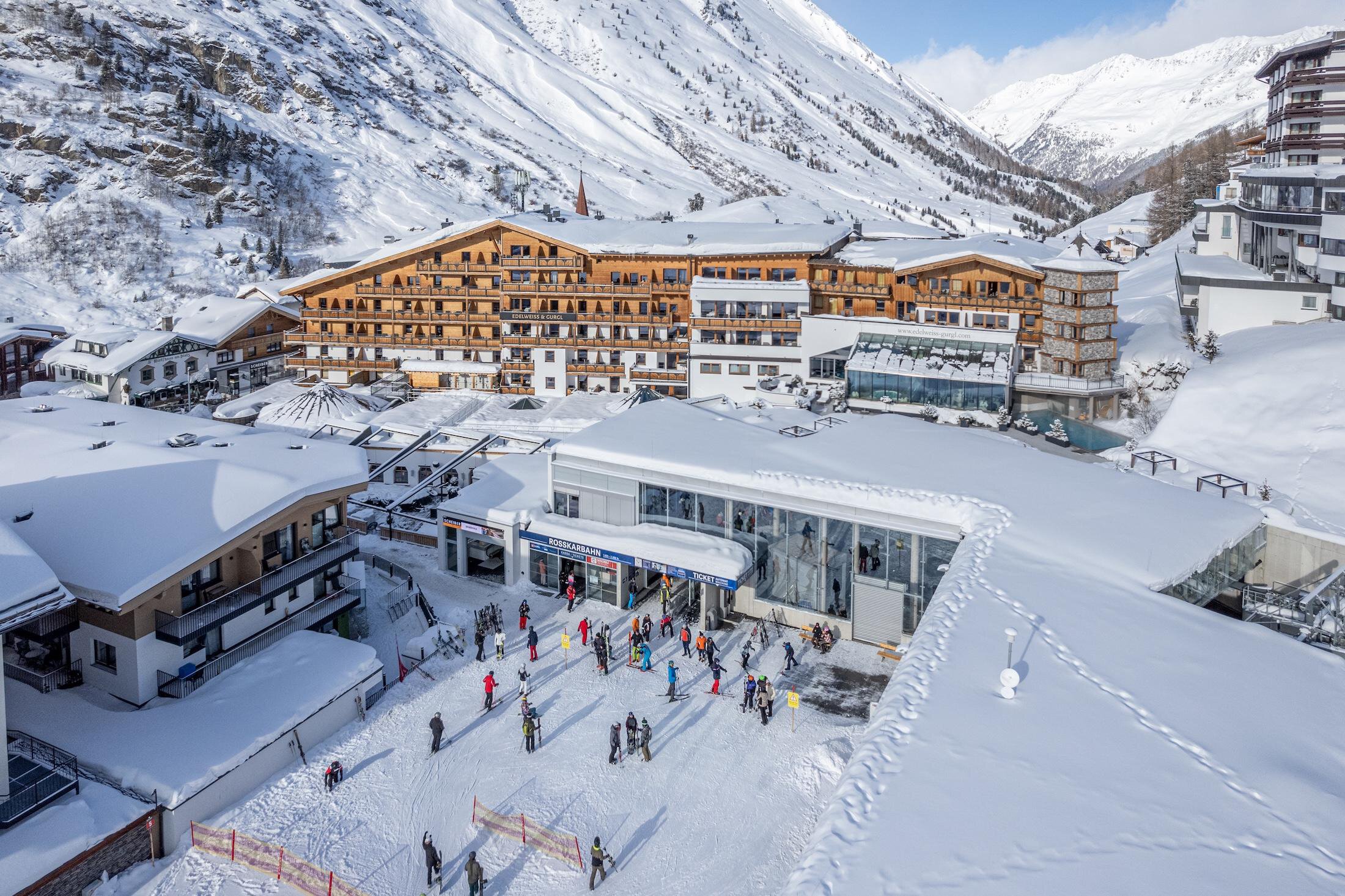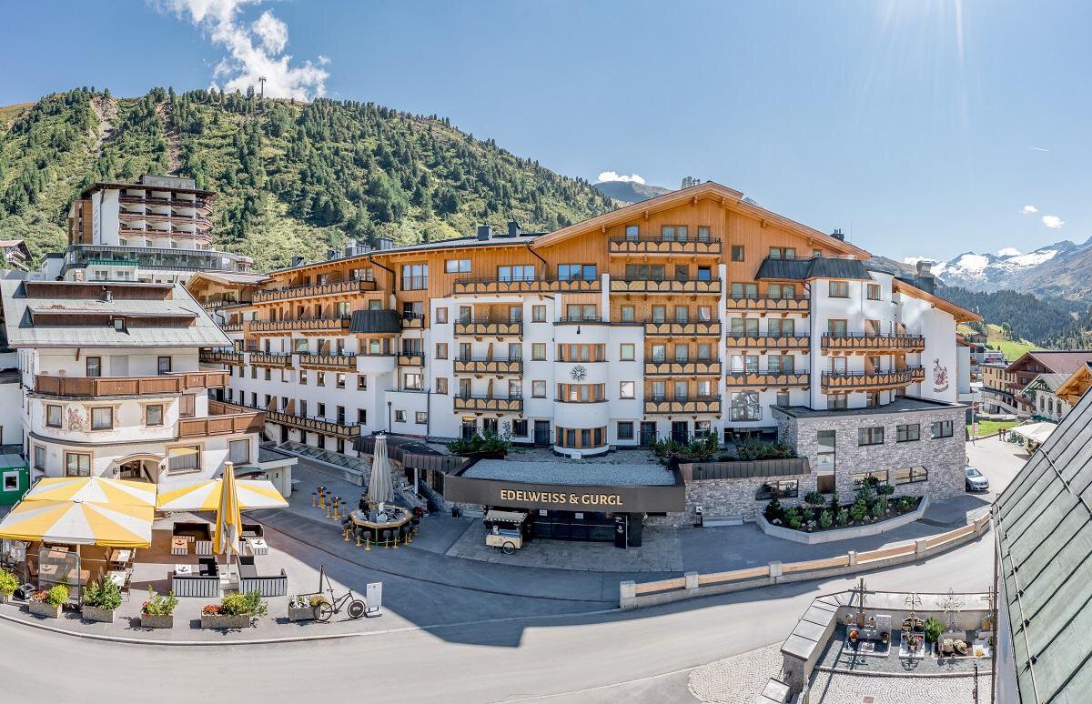 Das Traditionshaus mit "Gletscherspa" am schönsten Platz von Obergurgl. Mitten in den Ötztaler Alpen, in Obergurgl, erfüllt das 4-Sterne Wellness & Familienhotel Edelweiss & Gurgl alle Ihre Wünsche vom Traumurlaub in Tirol bzw. im Ötztal. Seit 4 Generationen verwöhnt Familie Scheiber Ihre Gäste. Ob Familienurlaub, Skiurlaub, Wellnessurlaub oder auch Reiturlaub - hier sind Sie richtig. Direkt an der Skipiste gelegen erleben Sie hier wahres Ski-in & Ski-out Service. Ein Kinderclub mit Kinderbetreuung sowie ein modernes Sportgeschäft und ein Skiverleih befinden sich ebenfalls im Hotel.